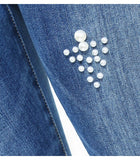 These stone washed stretch denim 5 pocket pants are the right choice for all bike-lovers, for they feature an ergonomic fit and stitched details. They are decorated with rips and decorative rhinestones as well as added tears. Single metal button fastening. The jewel version of the brand's hexagonal logo is sewn on the rear right pocket. Bottom: 26.5 cm. Fit: Biker.
