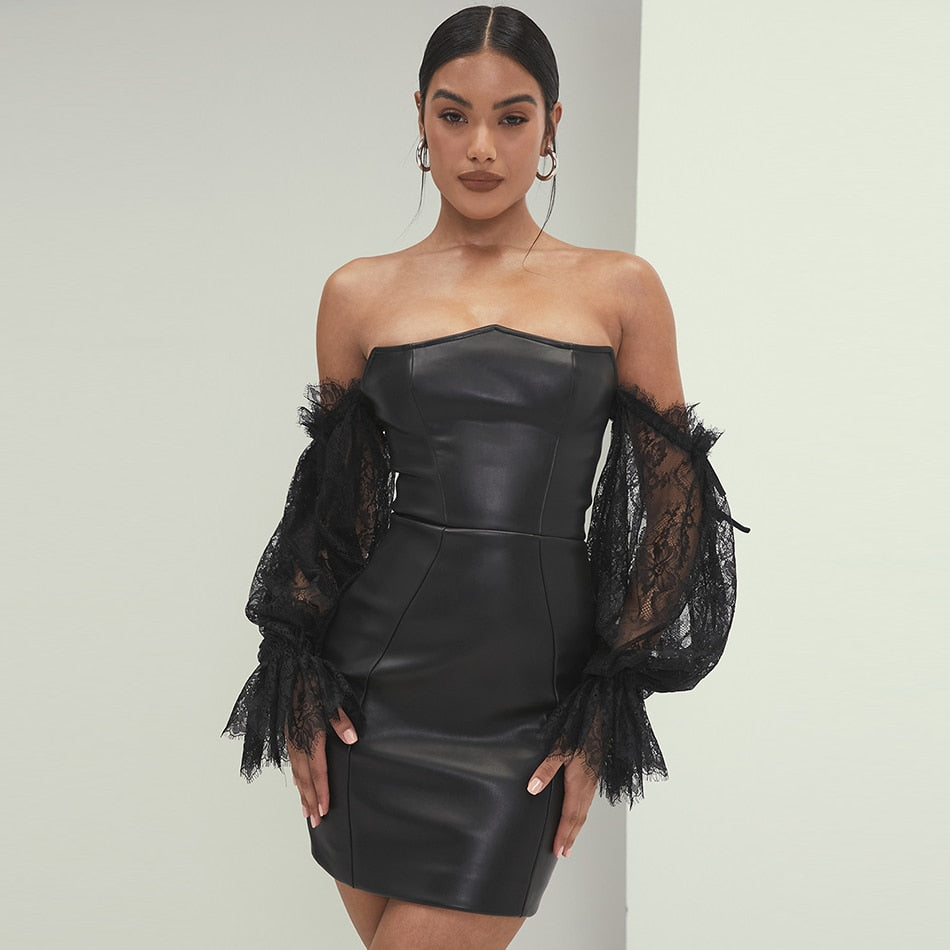 Leather-print silk chiffon off-the-shoulder, puff cuff sleeve, flouncy long dress. Drawstring at waist.