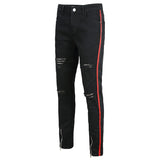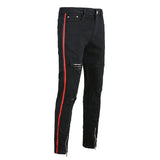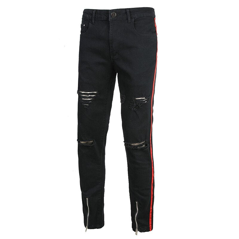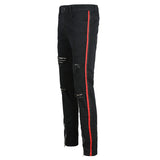 Motorbike rides lovers will enjoy slipping into these stone washed stretch denim 6 pocket pants with rips, mendings, inserts and ribbing. Metal buttons fastening. A label with the logo is sewn on the back of the waistband. Fit: Biker.