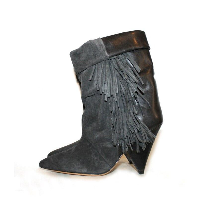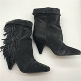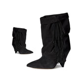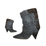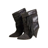 This season's theme, Far West, is the main feature of these leather ankle boots decorated with side fringes. Contrasting leather style between front and back of the boots. Low heels, Genuine leather sole. Leather lining.