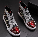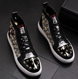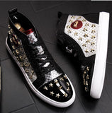 The iconic God Bless sneaker has been redesigned with this bold version showcasing the meticulous work of hand-placing a 60-piece stars embellishment. Mounted on a rubber sole, it features panels in satin and patent leather on its back counter. With a grosgrain piping finish, the pair give birth to this signature model molded in Neoprene for comfort.