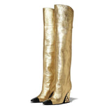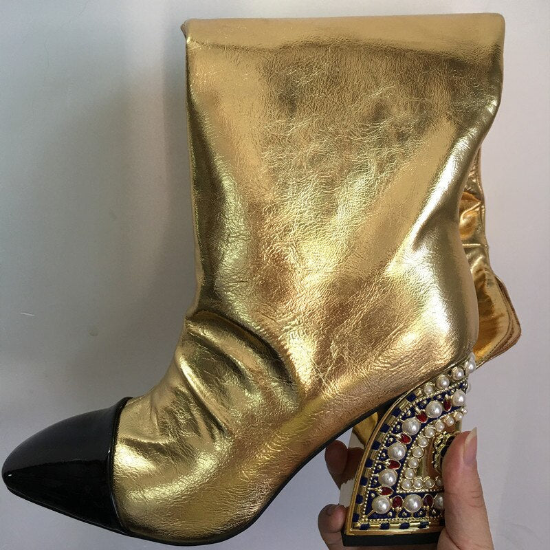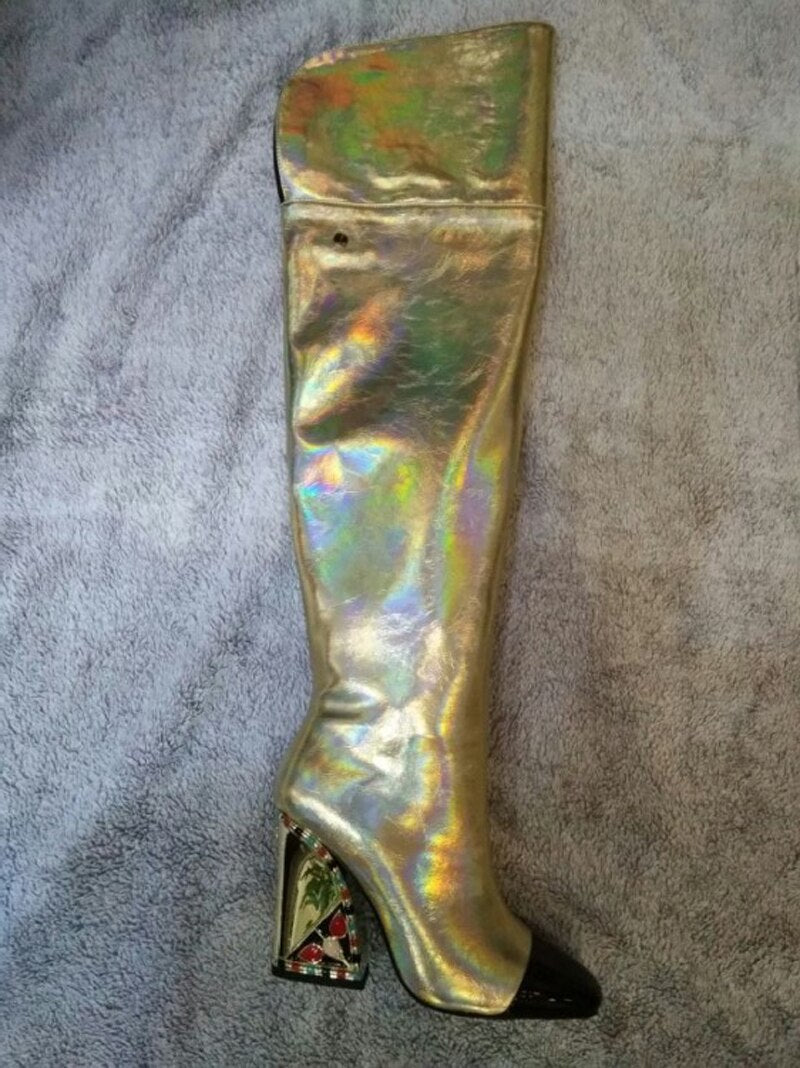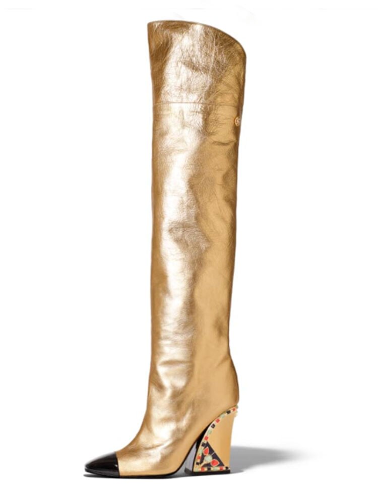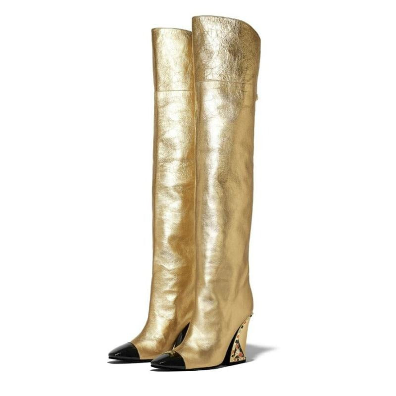 The Elegance is one of the most iconic boot models from the Maison Pisani. This season, it is inspired by nights at the Palace, a famous 1980's Parisian nightclub. Crafted entirely in genuine calfskin, it is mounted on an 85mm heel which lifts the leg with audacity. Toe Cap black suede. Wedge Heels. Heels 85mm.
