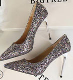 The iconic symbol of the Maison is the key feature of these suede pumps. This version is indeed encrusted with sequins pieces. Genuine leather sole. Inner lining. Iron stiletto Heel. Heel: 120 mm.