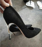 The iconic symbol of the Maison is the key feature of these suede pumps. This version is indeed “skewered” on the iron stiletto heel. Genuine leather sole. Inner lining. Heel: 120 mm.