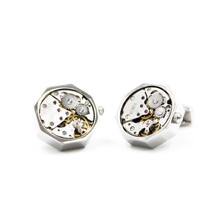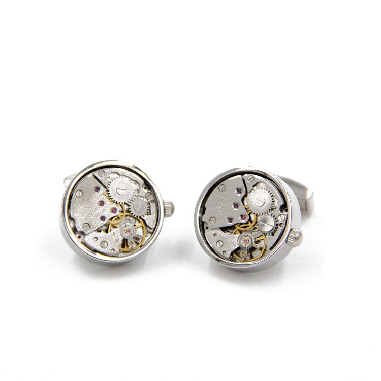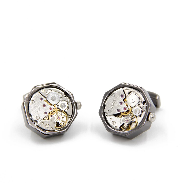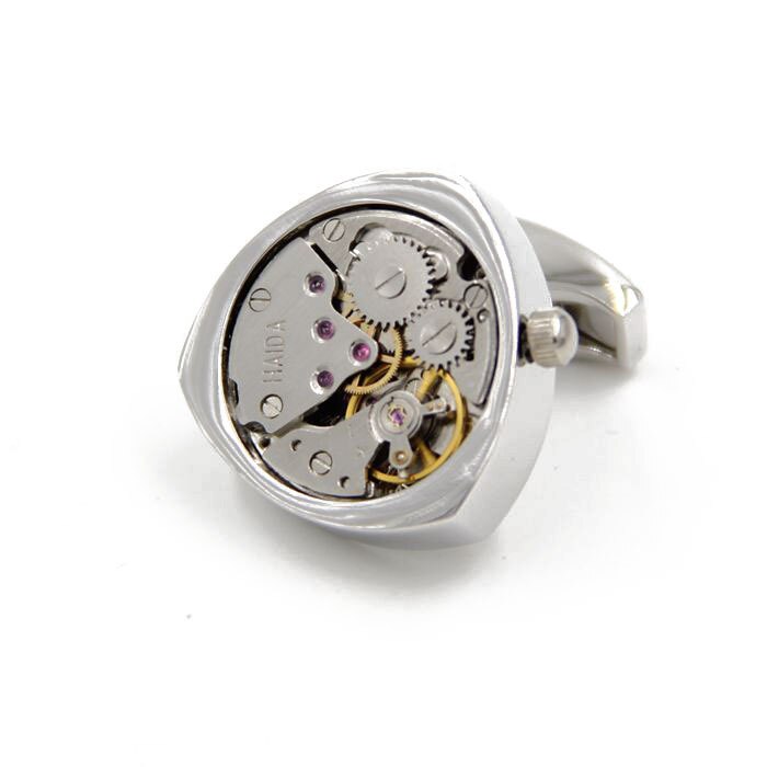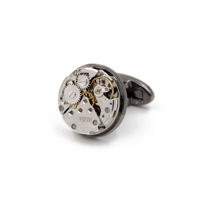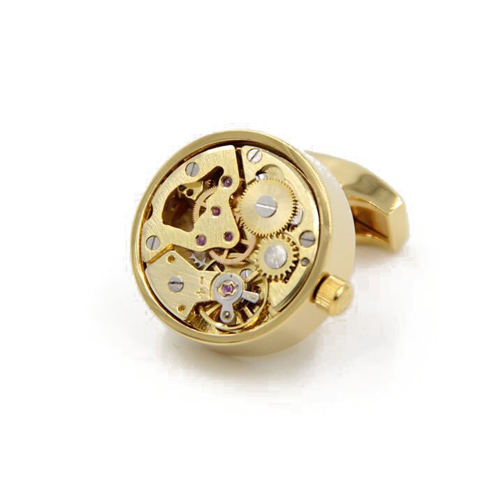 The classic knot designed masterfully in a gold tone plated base metal construction. Conventionally handsome and wearable with any shirt and tie, the Gold Knot Cufflinks are the perfect way to accent your french cuffs in style. Cufflinks don’t get any fancier than this. These watch cufflinks show you the inner workings of a functioning kinetic watch that is made of stainless steel with gold plated vintage watch parts. It is truly astonishing to see how much detail goes into making a watch. Approximately 3/4" in diameter Stainless steel with gold plated vintage watch parts Kinetic watch movements Bullet back closure