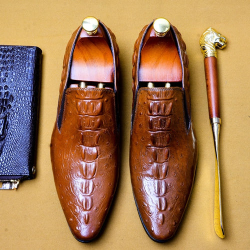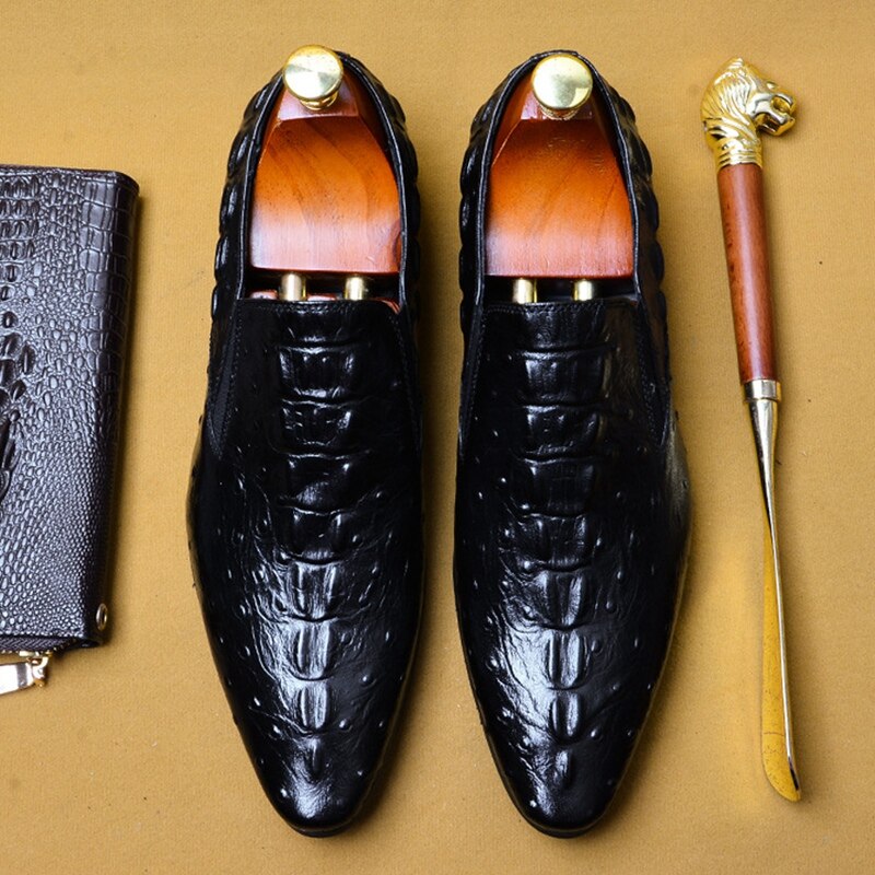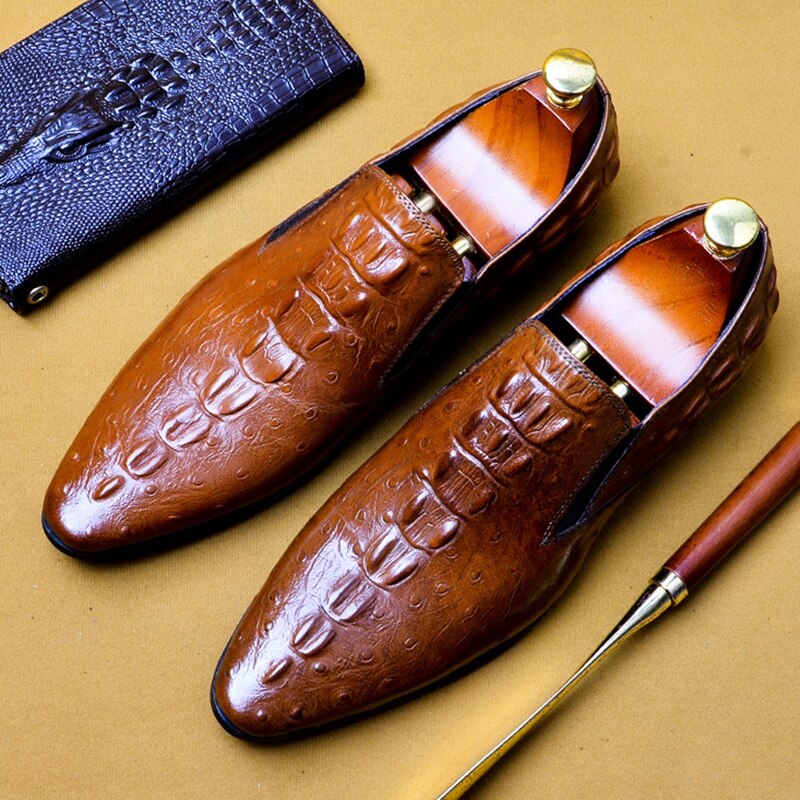 For all your special events these loafers are decorated with embossed crocodile effect thoghout the mocassin. Leather piping on hems. A metal badge with the brand's lettering on the heel. Genuine leather sole. Leather lining.