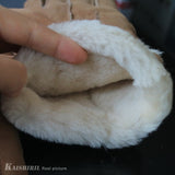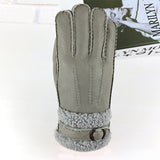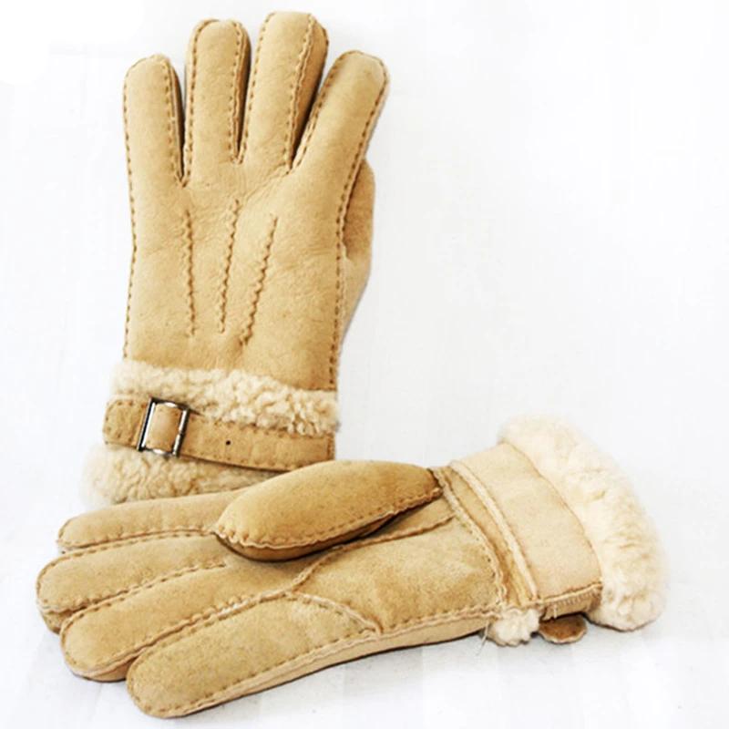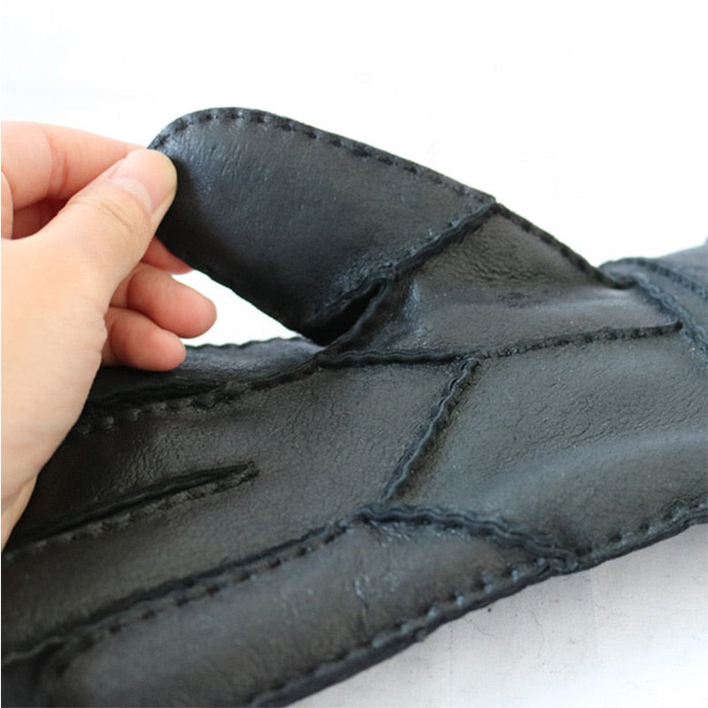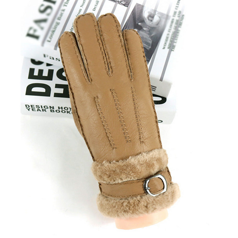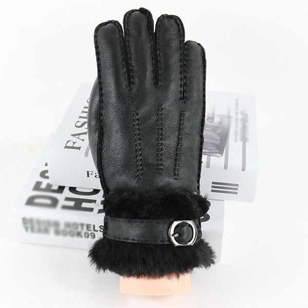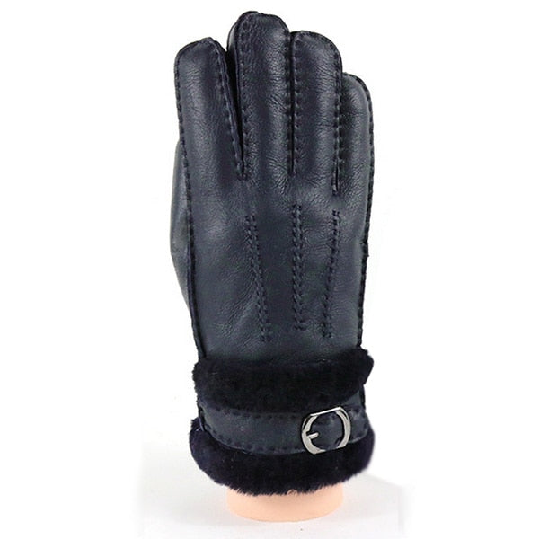 Leather gloves with a contrasting leather patch featuring the brand's lettering. Inner sheepskin lining.