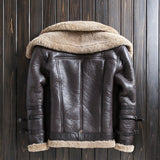 This Genuine leather pilot jacket features the add of a detachable real sheep wool fur on the lapel that can be swapped for a hoodie. The hexagonal logo is sewn at left chest. Zipper fastening. Two slit pockets. Woven ribbed collar, cuffs and bottom hem. Inner sheep wool fur lining