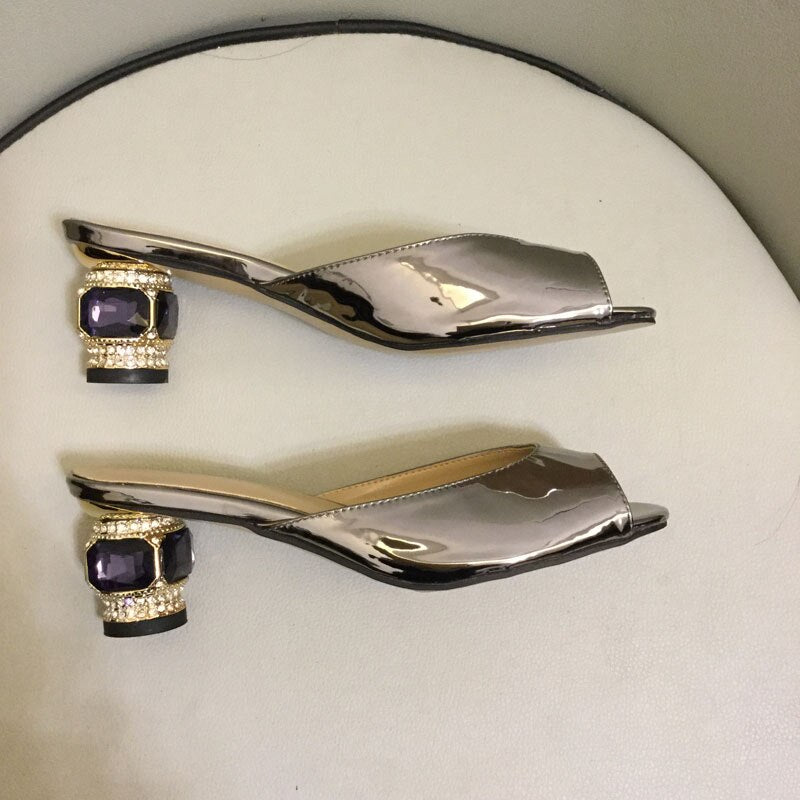 The timeless and elegant Mirros is Back with a low heel setting that highlights the swarovski crystals and a larger emerald cut stone, that embellish it. The shoe is embellished with one Milady satin mirror band featuring Impressionist-inspired simple uni colour print. Designed according to specific know-how particular to Maison Pisani Maura, they intersect and form a refined drape that shows off the foot by creating a tapered notch. The clean lines of this model give it a sophisticated charm.