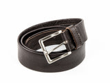 Cintura in pelle di vitello decorata con la stampa del lettering del marchio inciso. Fibbia in metallo a forma di logo esagonale. Fodera in pelle. Altezza: 4 cm.