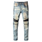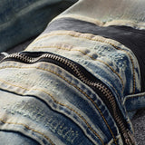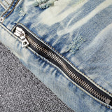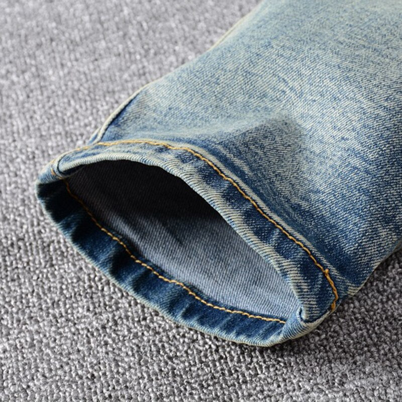 Wear-and-tear and scratches are the main feature of these stone washed stretch denim 5 pocket pants. The sporty inspiration is highlighted by the rear made of cotton fleece. A stripe with the brand’s lettering is printed on the left leg and ribbed fabric inserts are sewn on the knees. Cotton ribbed waistband with drawstring. A leather badge with the brand's hexagonal logo on the right rear pocket. Cotton ribbed bottom cuffs. Two needle stitching. Fit: Slim Shady Chill.