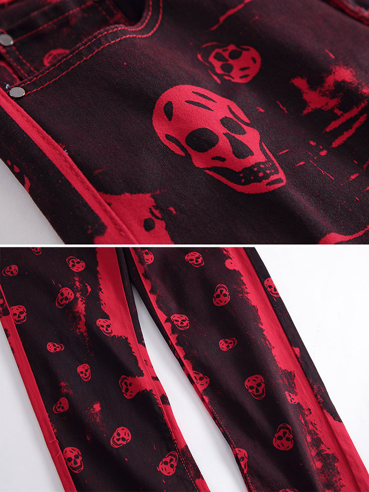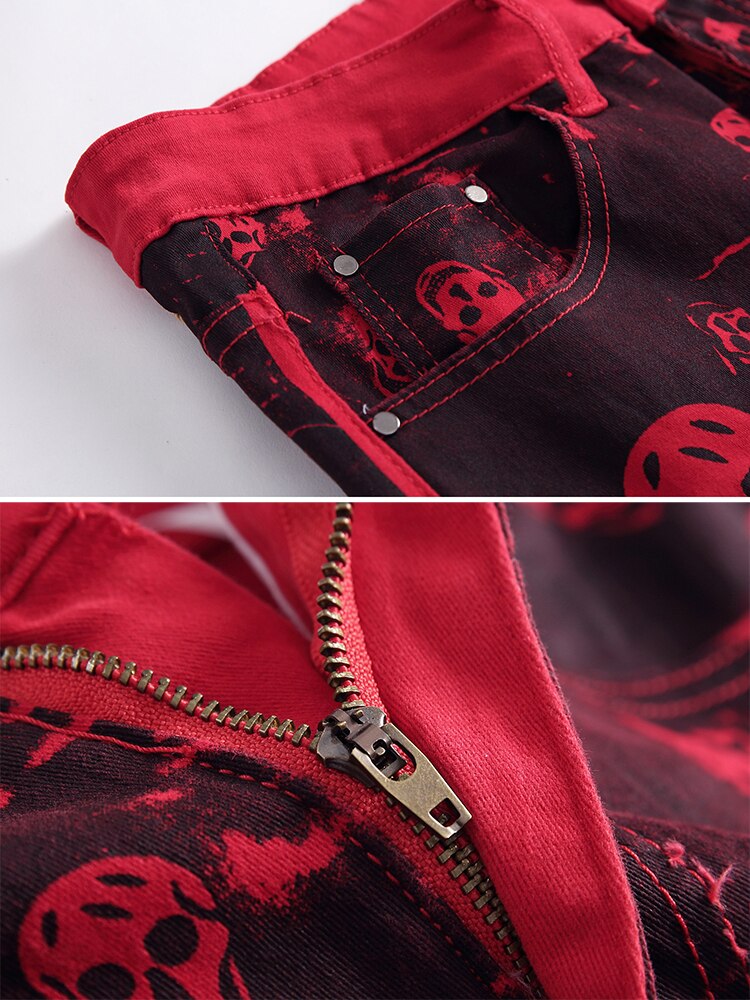 Skulls all over is the main feature of these stone washed denim 6 pocket pants. Metal buttons fastening. The Maison’s lettering is embroidered under the rear waistband. Two needle stitching. Fit: Straight.