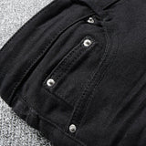 The brand’s cristals are sewn and embroidered all-over these stone washed denim 4 pocket pants. Crystal decorations and coloured drippings make the garment a “must have item”. Metal buttons fastening. Two needle stitching. Fit: Straight.