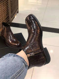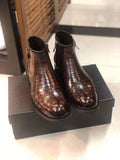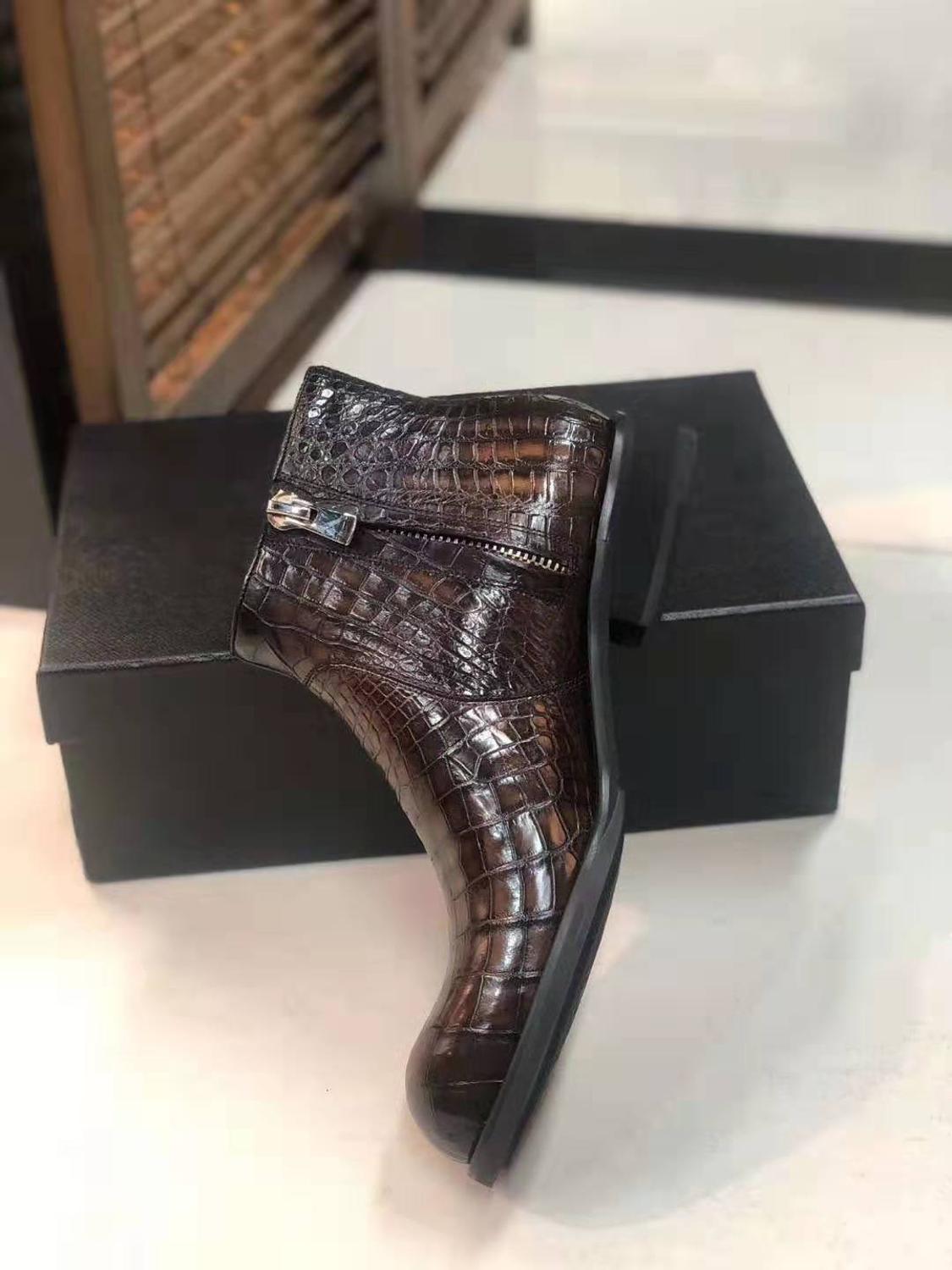 These arethe flagship of ITalian handmade production. Genuine crocodile ankle boots. Side zipper fastening. Metal badge on the heel. Anti-slip Rubber sole. Leather lining.