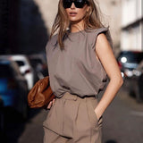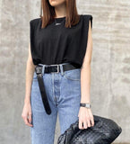 Baggy cotton sleeveless sheath dress. Small-stud applications highlight the neckline and armhole.