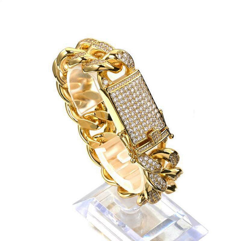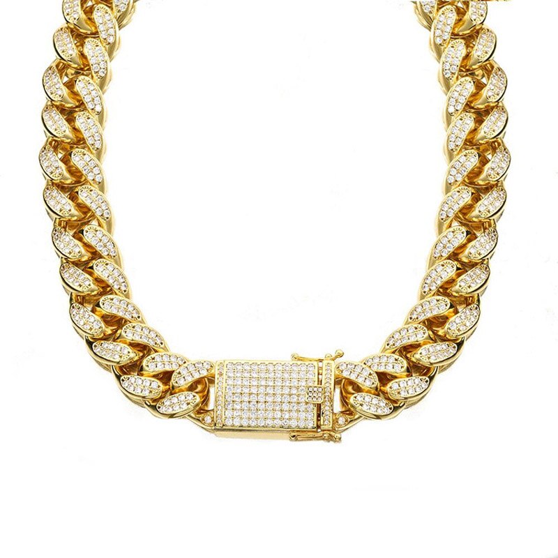Cuban chain bracelet and necklace set, 18K yellow gold, set with 1204 brilliant-cut diamonds totalling 8.00 carats the bracelet and 42 carats the necklace. Width: 18 mm.