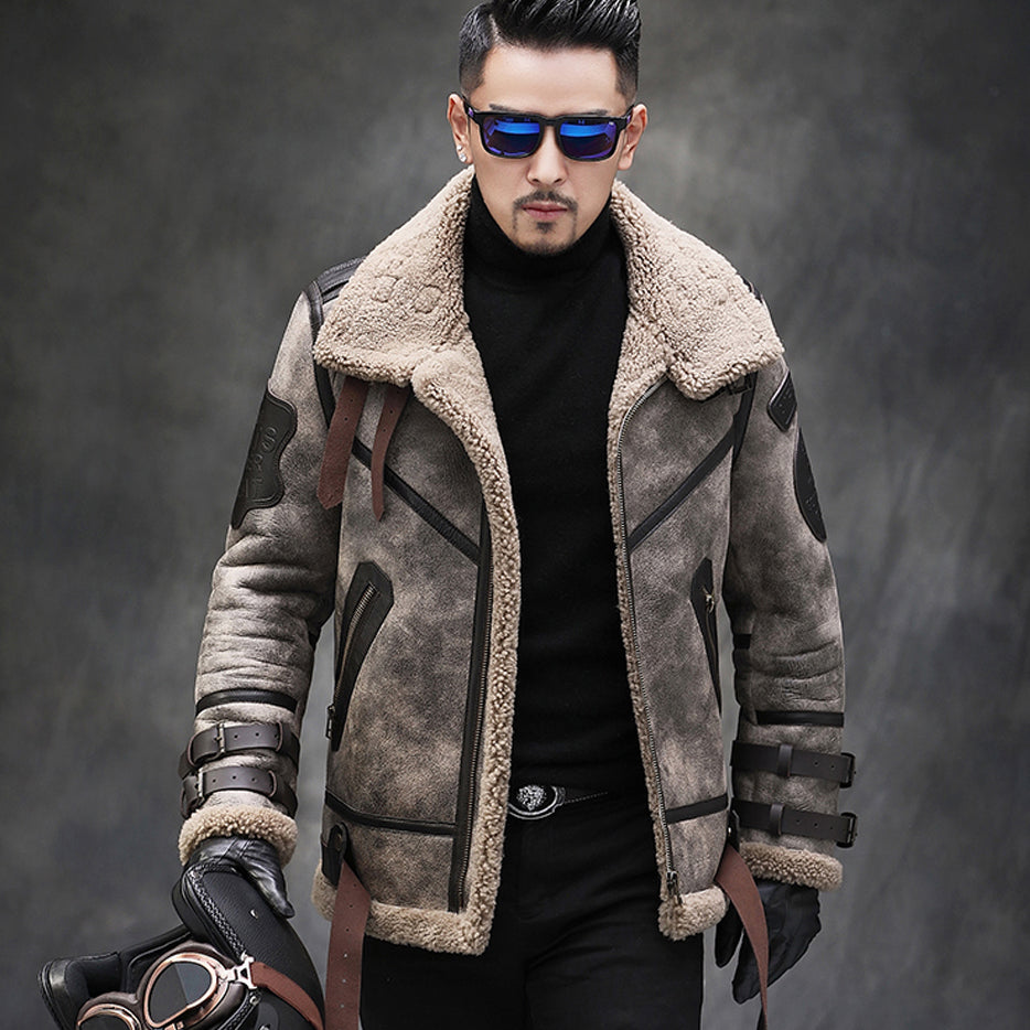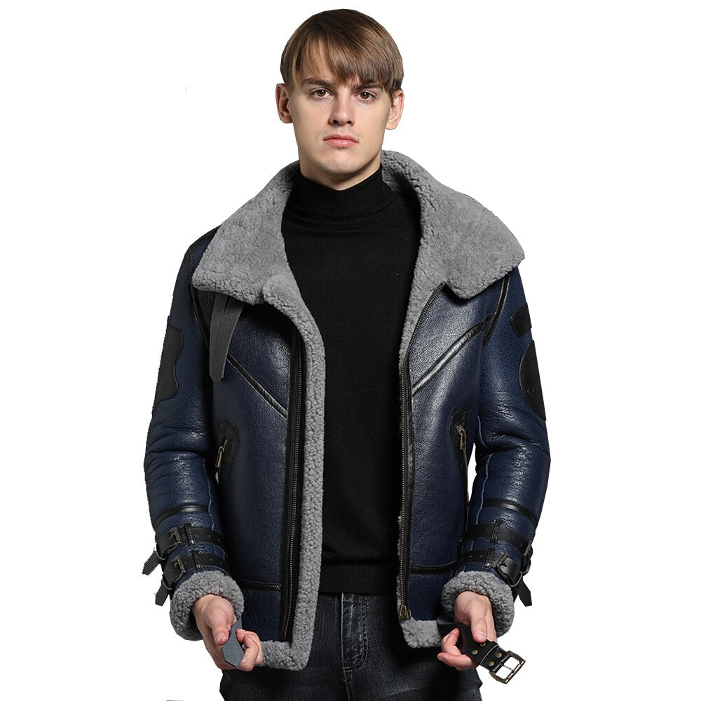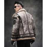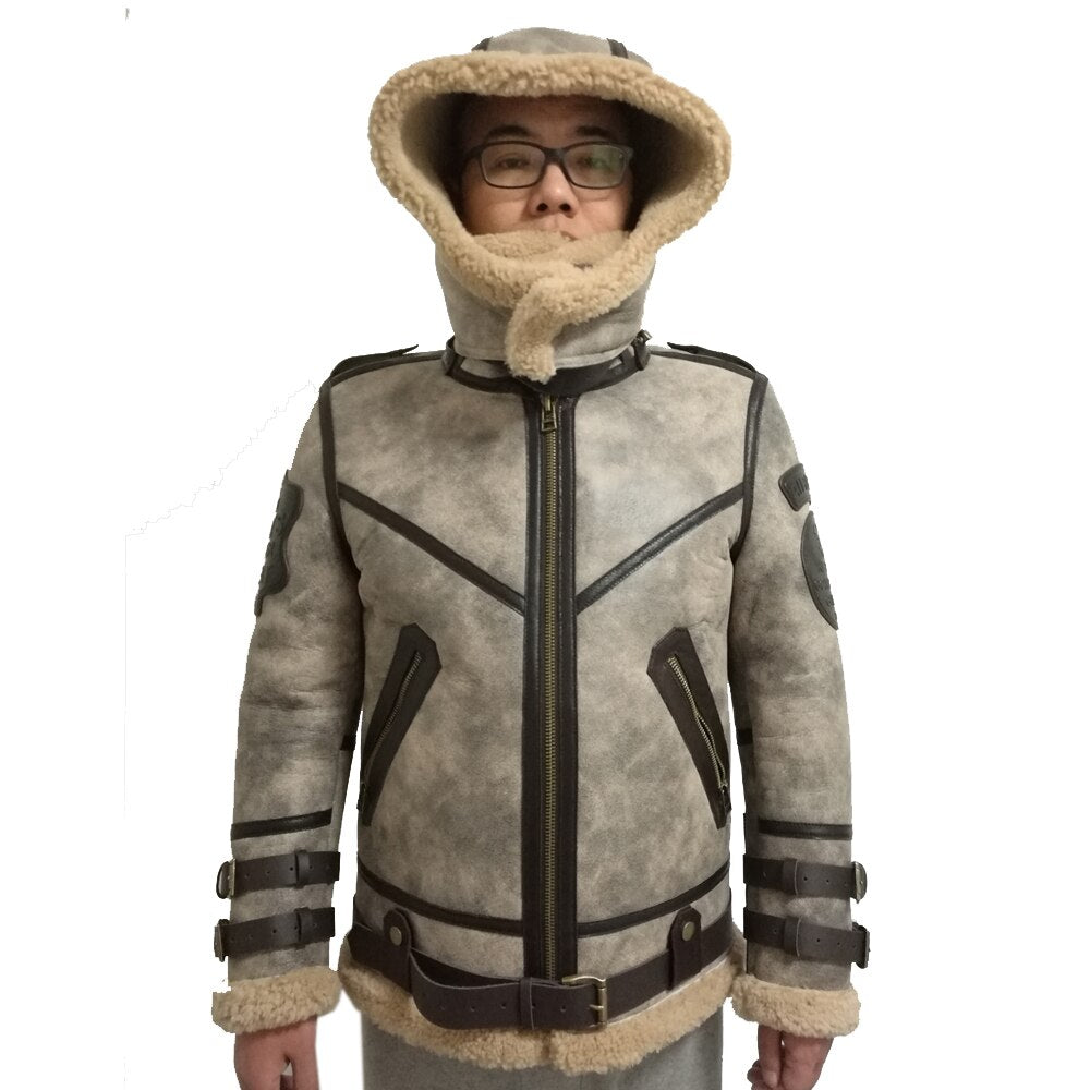 This Genuine leather pilot jacket features the add of a detachable real sheep wool fur on the lapel that can be swapped for a hoodie. The hexagonal logo is sewn at left chest. Zipper fastening. Two slit pockets. Woven ribbed collar, cuffs and bottom hem. Inner sheep wool fur lining.