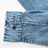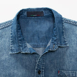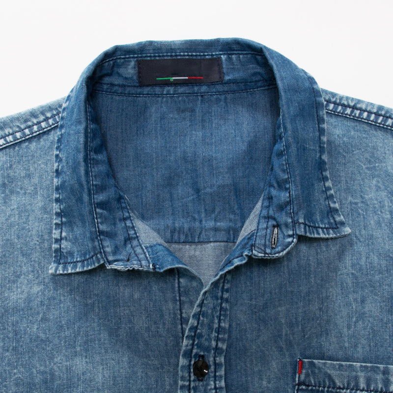 A brand new look for the worker shirt. Shirt collar, buttoning, one patch pockets with flap and two slit ones. Buttons on cuffs.