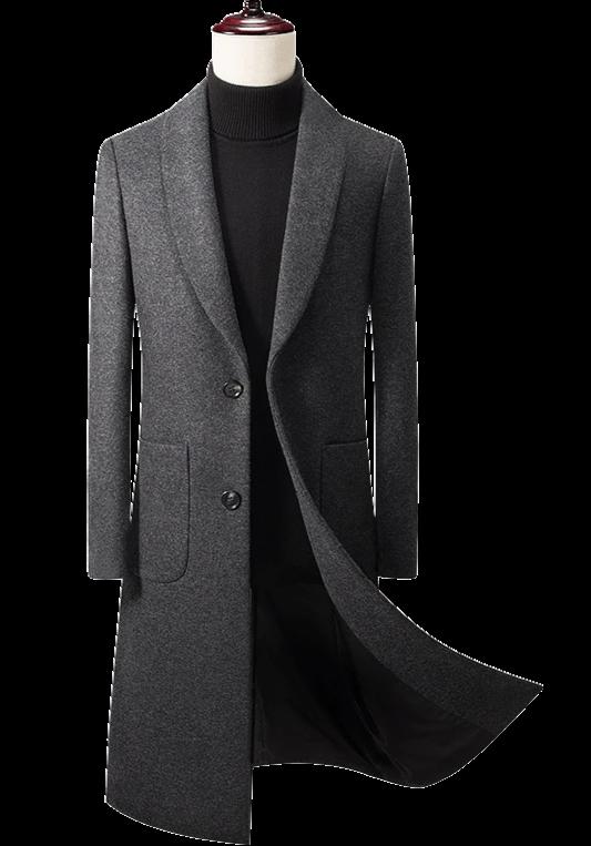 The classic cut of this two button woollen overcoat is brightened up by Pisani Maura in style. Shawl lapel. Two welted pockets. Inner lining with the all-over jacquarded corporate lettering.