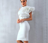 Simple yet sumptuous. This is what better describes this stretch viscose crepe strapless sheath dress. It features an emebroidered-decoration that replicates the brand’s ability to play with the futuristic vision of this collection on a single shoulder. Zipper fastening at centre back.