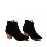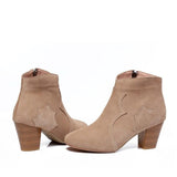 This season's theme, Far West, is the main feature of these suede leather ankle boots decorated on the bridge. zip-up side panels. Genuine leather sole. Leather lining.