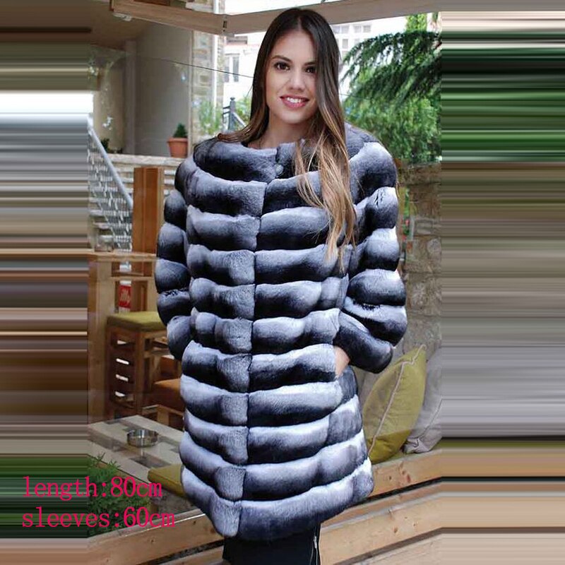 Luxury and originality are embodied in this soft chinchilla rex rabbit coat. The front, the sleeves and the hood are made of horizontal fur . Hook closure and two slit pockets. Inner lining with animalier print and feautres and ... inspirational quote by Pisani Maura..