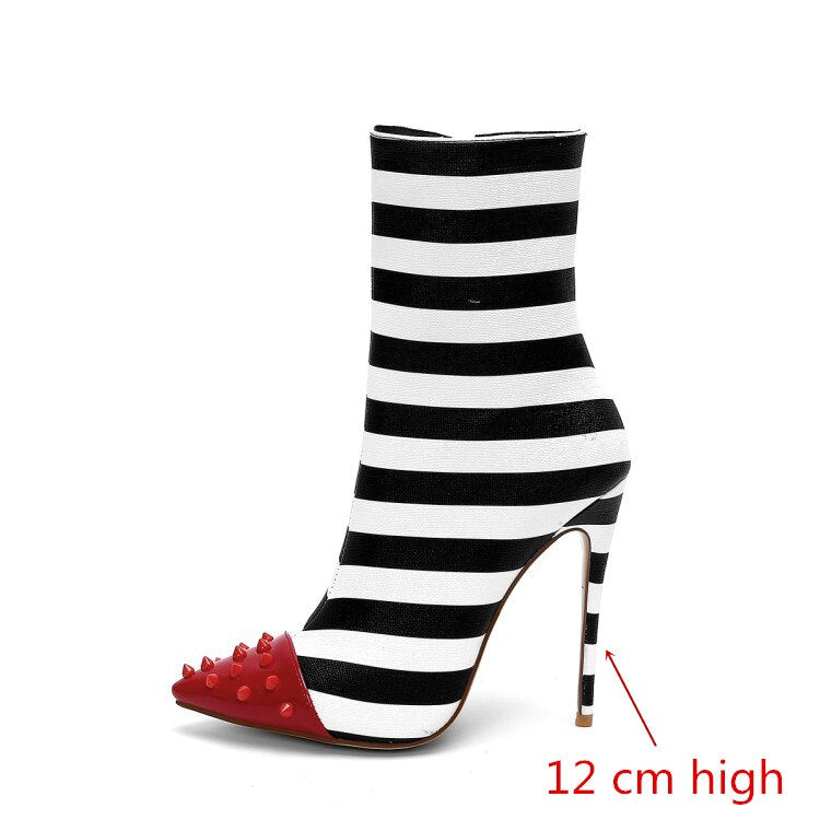 The iconic symbol of the Maison is the key feature of these leather pumps. Zebra printed leather. This version is indeed “skewered” on the iron stiletto heel. Spikes on the toe cap. Genuine leather sole. Inner lining. Heel: 120 mm.