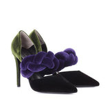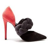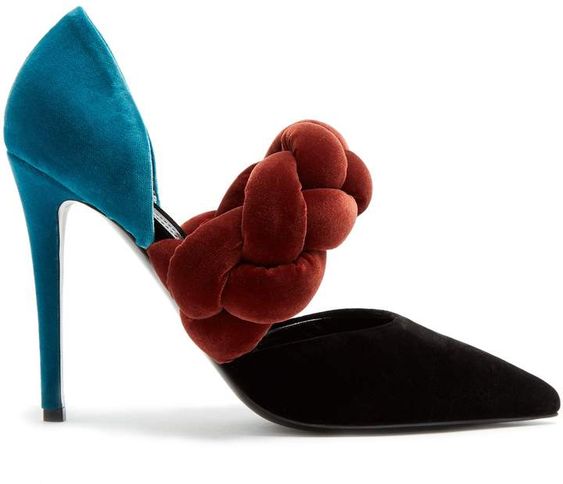 The iconic symbols and experimental attitude of the Maison is the key feature of these Suede leather pumps. This version is indeed “wrapped” by a woven silk band on the bridge. Iron stiletto heel fully lined. Genuine leather sole. Inner lining. Heel: 120 mm.
