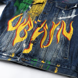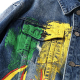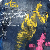 This stone washed denim jacket becomes an iconic garment thanks to the embroidery and prints of this season’s iconic subjects throughout. Slit pockets and patch ones with flap. Metal jewel buttons fastening. The hexagonal logo is sewn on the yoke. Bottom hem is decorate with the brand's lettering. Two needle stitching. Unlined.