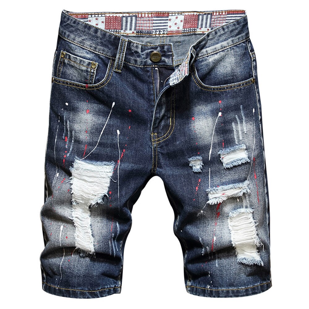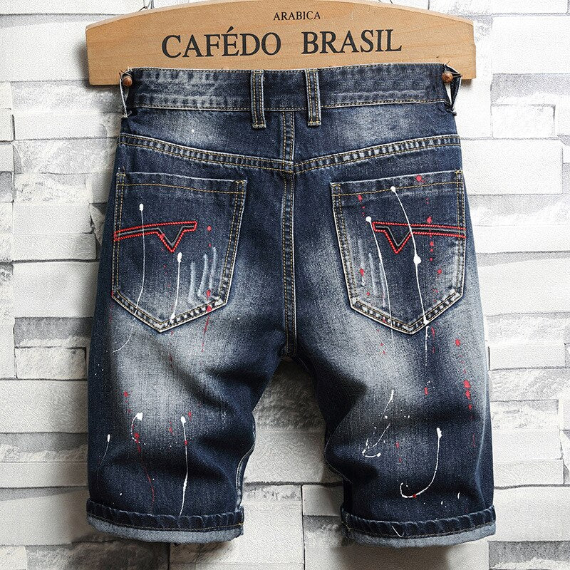 Patches, rips and wear-and-tear are the distinctive feature of these stretch stone washed denim 5 pocket shorts. Decorative zippers and a leather patch sewn on the right rear pocket. Single metal button at waist. Shadow pockets on the back and an extra one is sewn within the right one. Fit: Biker.