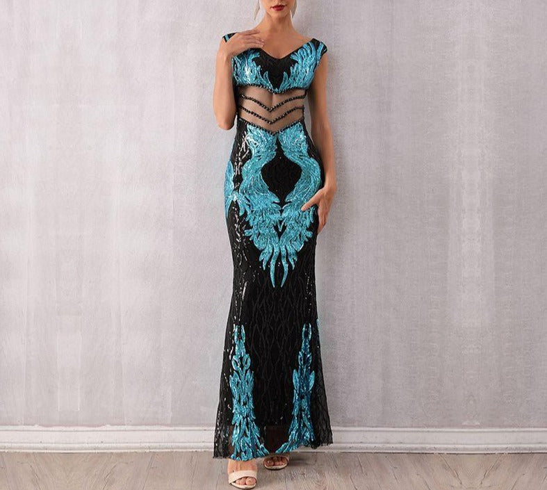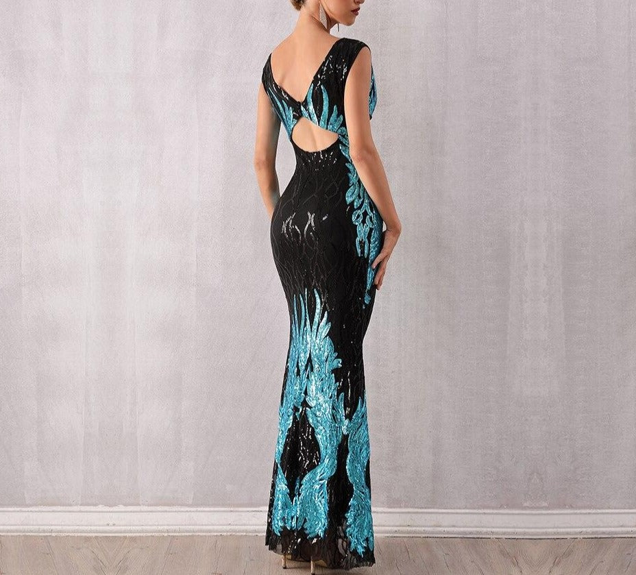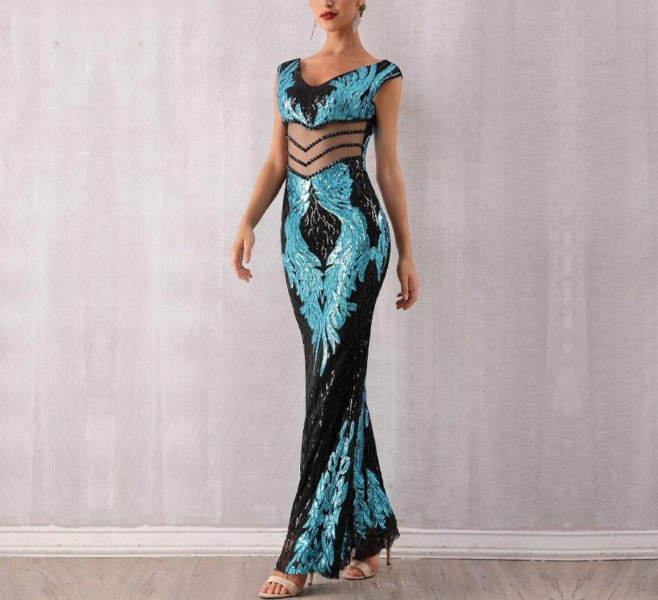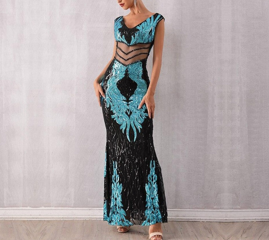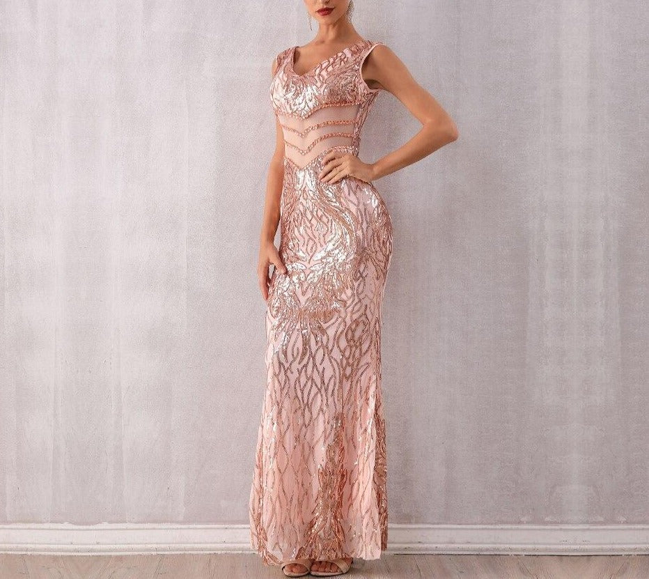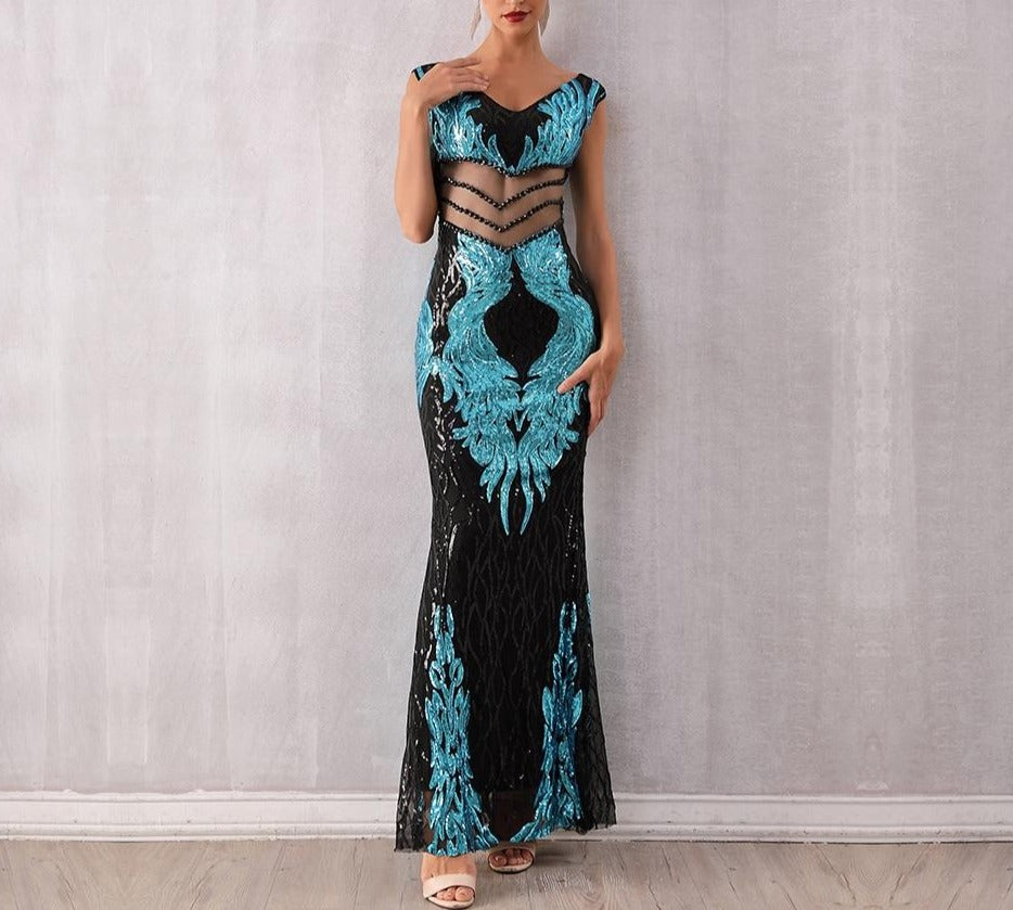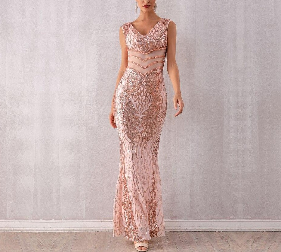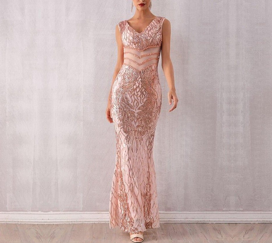 Draping, pleats and see-through are the key feature of this impalpable silk chiffon dress. Rhinestone decorations embellish the dress. Body lining. Zipper fastening at centre back.
