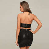 The new roaring twenties are embodied by this jersey strapped wrap two-pieces dress covered in mini-rhinestones. A draping on the left side makes it sparkle and glimmer non-stop. Zipper fastening at centre back.