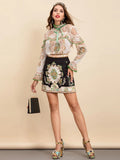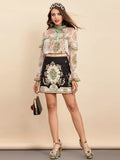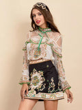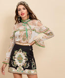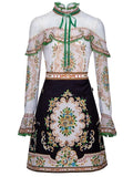Animalier-print Cotton jersey dress with bell sleeves. The waist is highlighted by a ribbed decorated with golden embroideries . The wide skirt gives volume to the garment. Concealed zipper fastening at centre back.