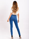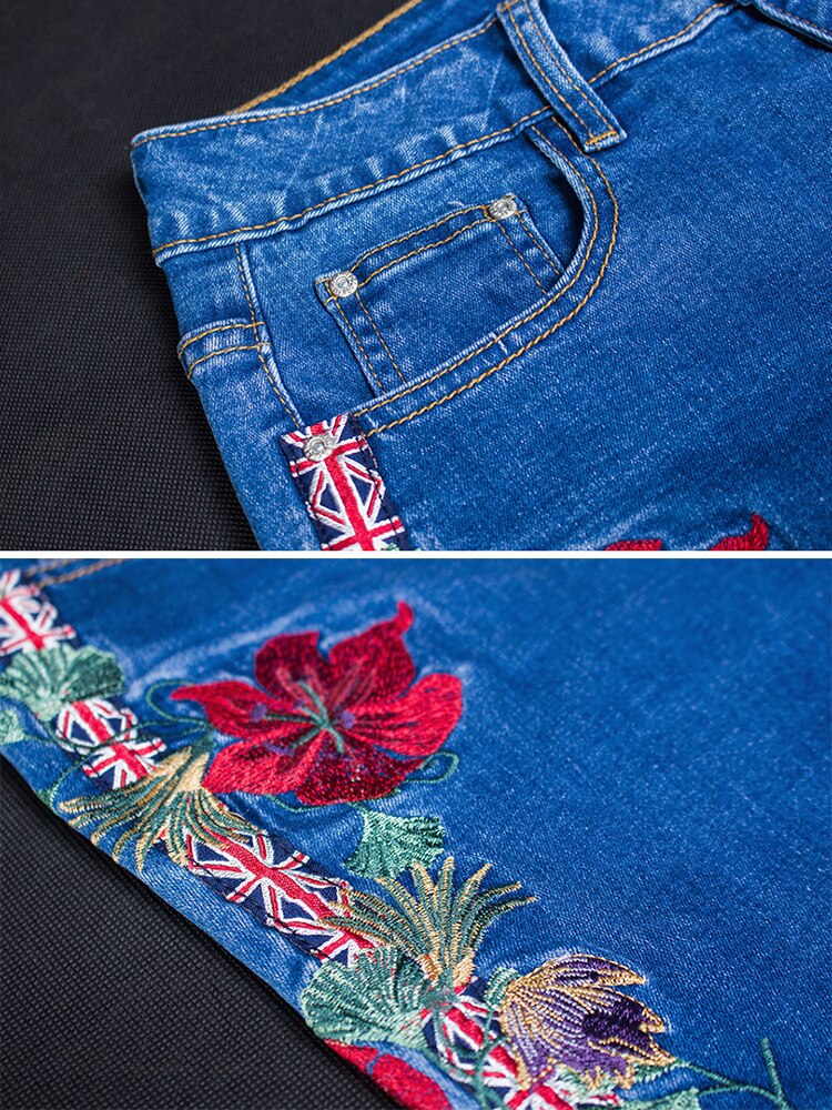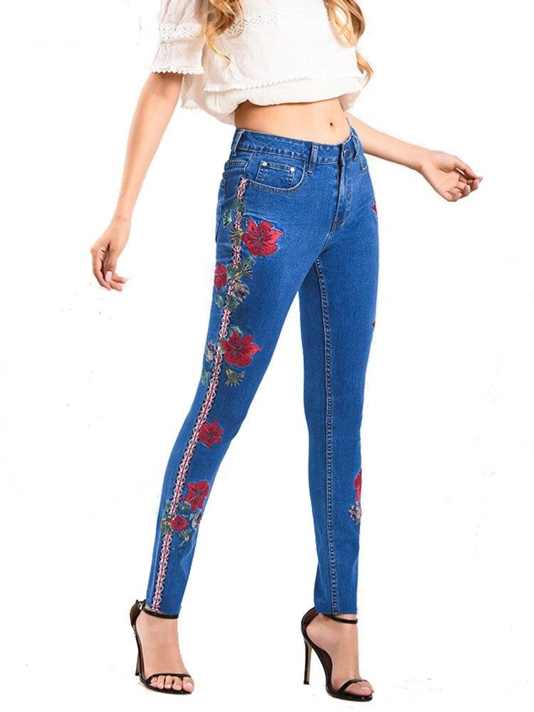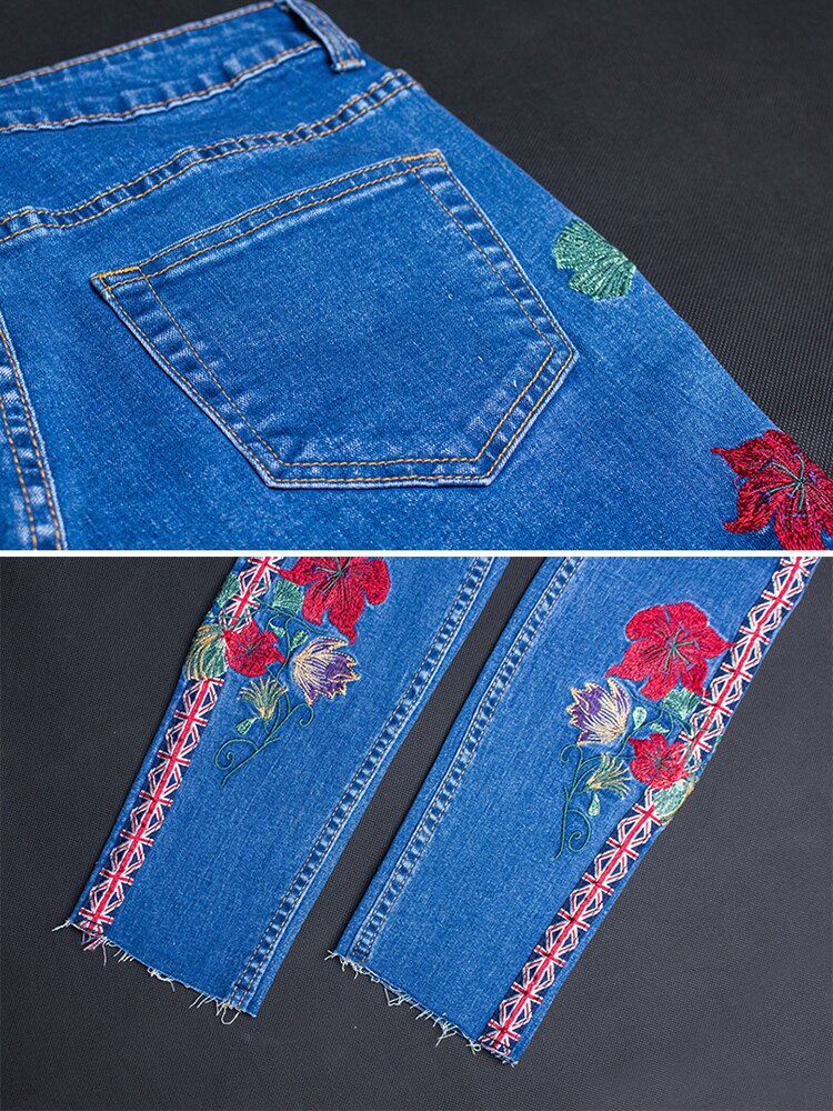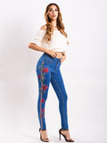 All-over Roses decorations with rhinestones are the distinctive feature of these stretch stone washed denim 5 pocket jeggings. Single metal jewel button fastening. The iconic hexagonal logo is sewn on the rear right pocket. Bottom: 28 cm. Fit: High Waist.