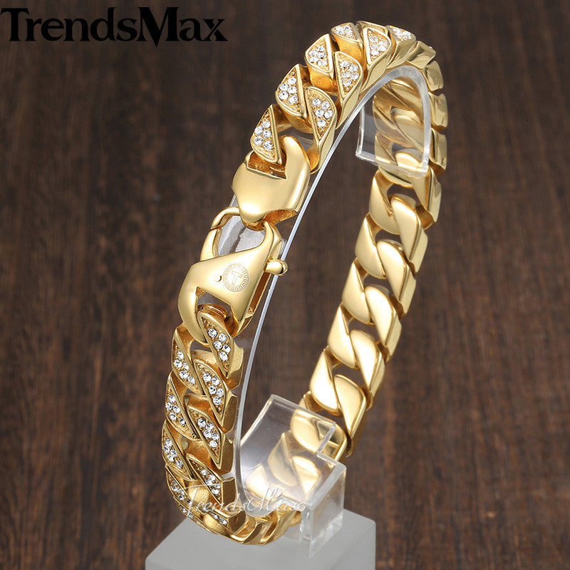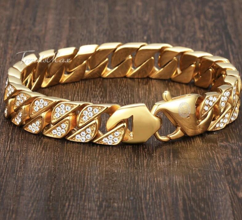 Classic 12 mm Wide Cuban Bling Bling Bracelet. Features a secure Triple Lock Clasp with the Hip Hop Bling Logo. Highly detailed with intricate details and stone setting. All stones are VVS Simulated Diamonds that are prong set. Pair with the Matching Chain Features a Custom Snap Lock Clasp Color - Yellow Gold or White Gold Solid 10K and 14K Diamond Editions Available Upon Request.