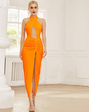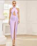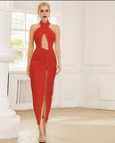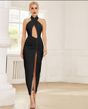 A plunge neckline, draping and see-through are the key feature of this silk chiffon long dress. On the neck and waist lace-decorations gather the fabric thus creating flouncy puckering. Body lining. Hook and zipper fastening at centre back.