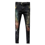 Wear-and-tear as well as brushes of different colours on the length are the main feature of these stone washed stretch denim 6 pocket pants. Metal buttoning. A leather badge with the Maison’s lettering on the right rear pocket. Two needle stitching. Fit: Slim.