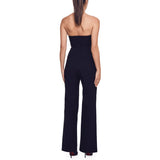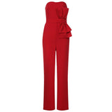 Matte satin sleeveless romper with silk details. The garment shines with delicate large bowtie ribbon drape. Zipper fastening at centre back.The 70’s glam is brought back by this silk cady long open shoulder dress.