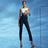 The simple, plain lines of this sheath dress are brightened up by the tribute Pisani Maura pays to the proibitionism or the 20's. The garment is made of viscose knit yarn and is decorated with lace woven in lurex throughout the waist line. The hexagonal logo is sewn on the left front bottom of the skirt.Opened sleeves.