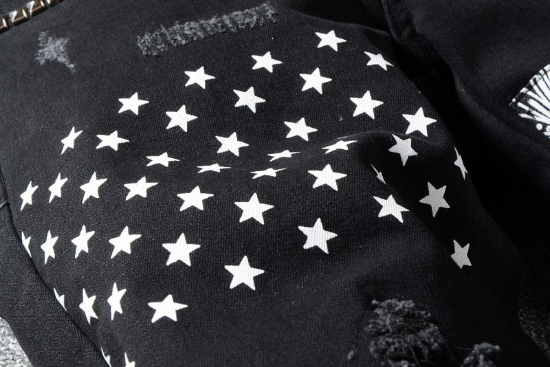 The brand’s lettering in different styles is sewn and embroidered all-over these stone washed denim 4 pocket pants. Stud decorations and coloured drippings make the garment a “must have item”. Metal zip fastening. Two needle stitching. Fit: Straight.