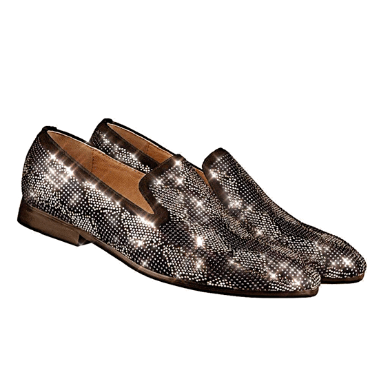 Pisani Maura can turn anything into luxury. These pop-rock bicolor suede loafers are proper jewel shoes as they are completely encrusted with crystals. Slide-safe rubber sole. Nappa lining and removable insole.