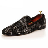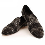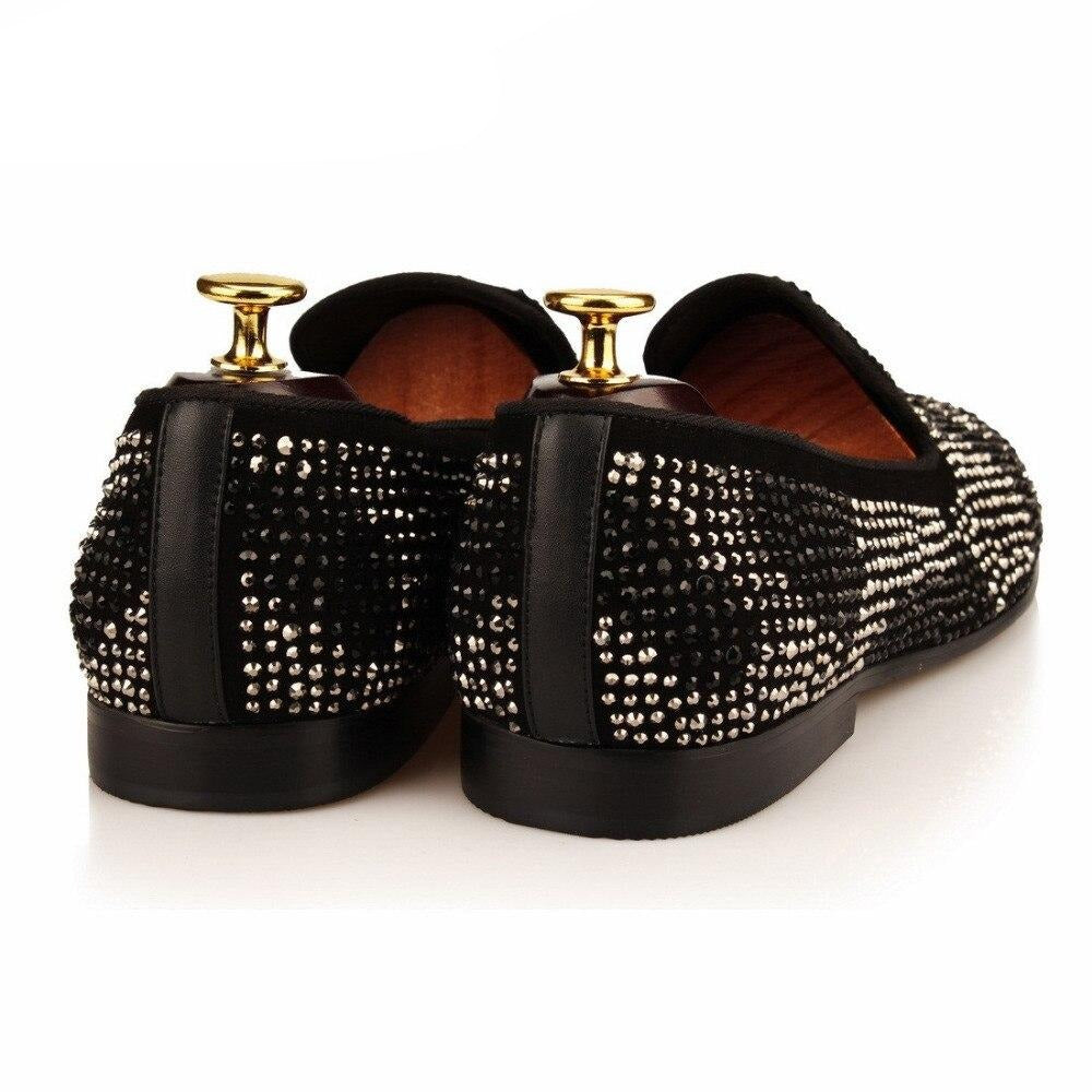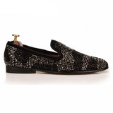 Pisani Maura can turn anything into luxury. These pop-rock bicolor suede loafers are proper jewel shoes as they are completely encrusted with crystals. Slide-safe rubber sole. Nappa lining and removable insole.
