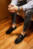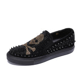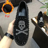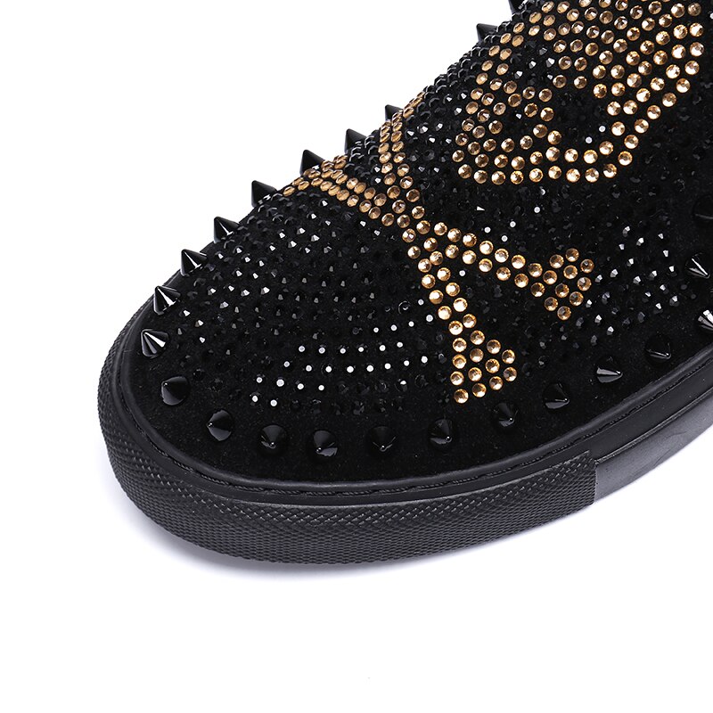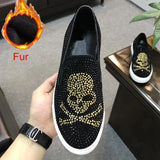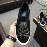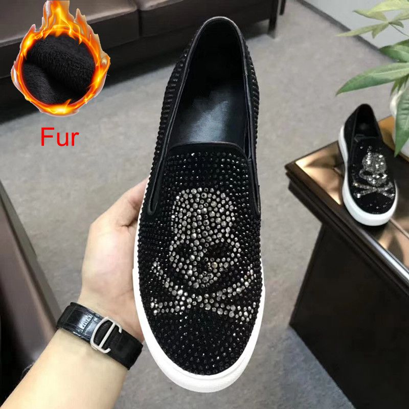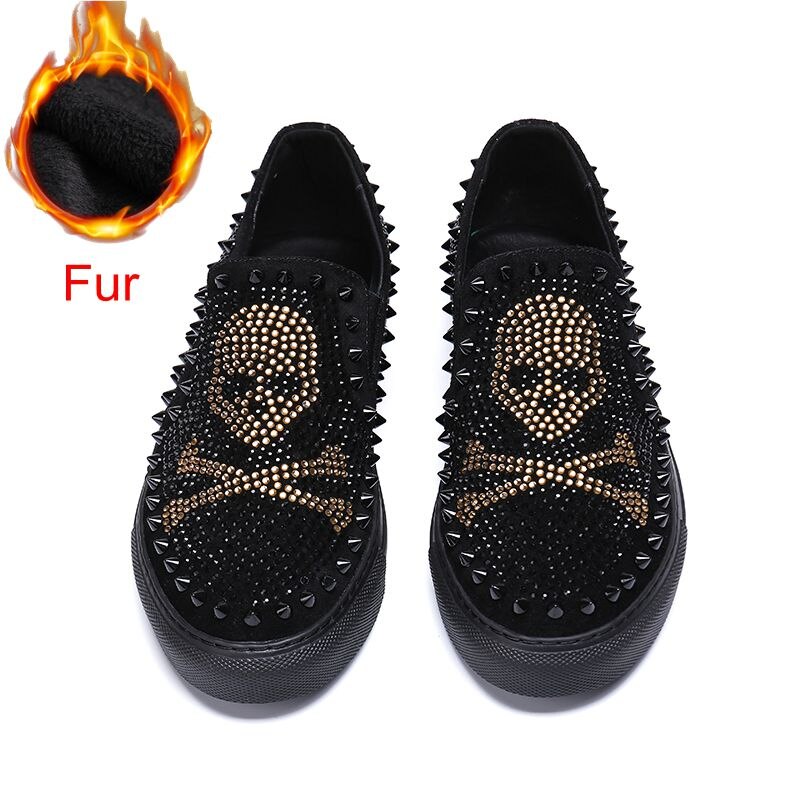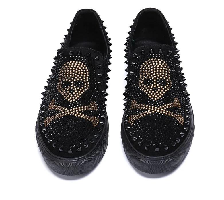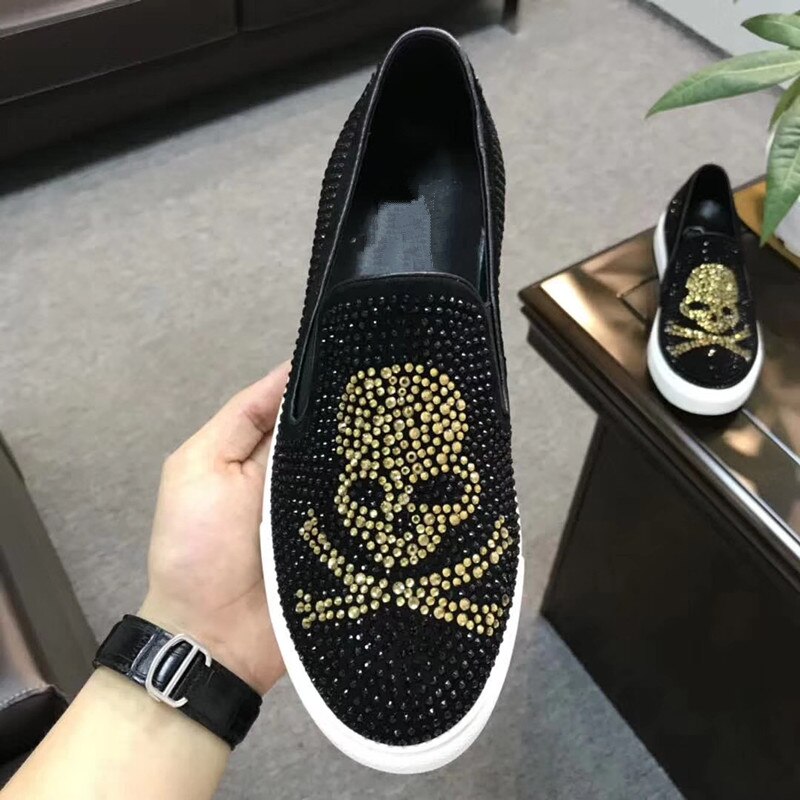 Between a sneaker and a boat shoe, the Crystal Skulls perfectly combine sophistication and ease. Mounted on a white or blackanti-slide rubber sole, they are made of navy python with a satiny finish and lined with spikes. They have side elastics on the vamp and a tone-on-tone grosgrain finish.<p>