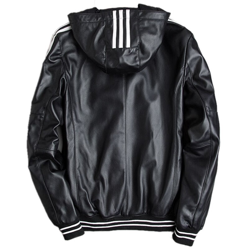 This leather bomber features a removable leather hood. Zipper fastening. Two slit pockets. The hexagonal logo is sewn at left chest. Woven ribbed collar, cuffs and bottom hem. Inner lining features the print of the brand’s lettering, in different versions, throughout.