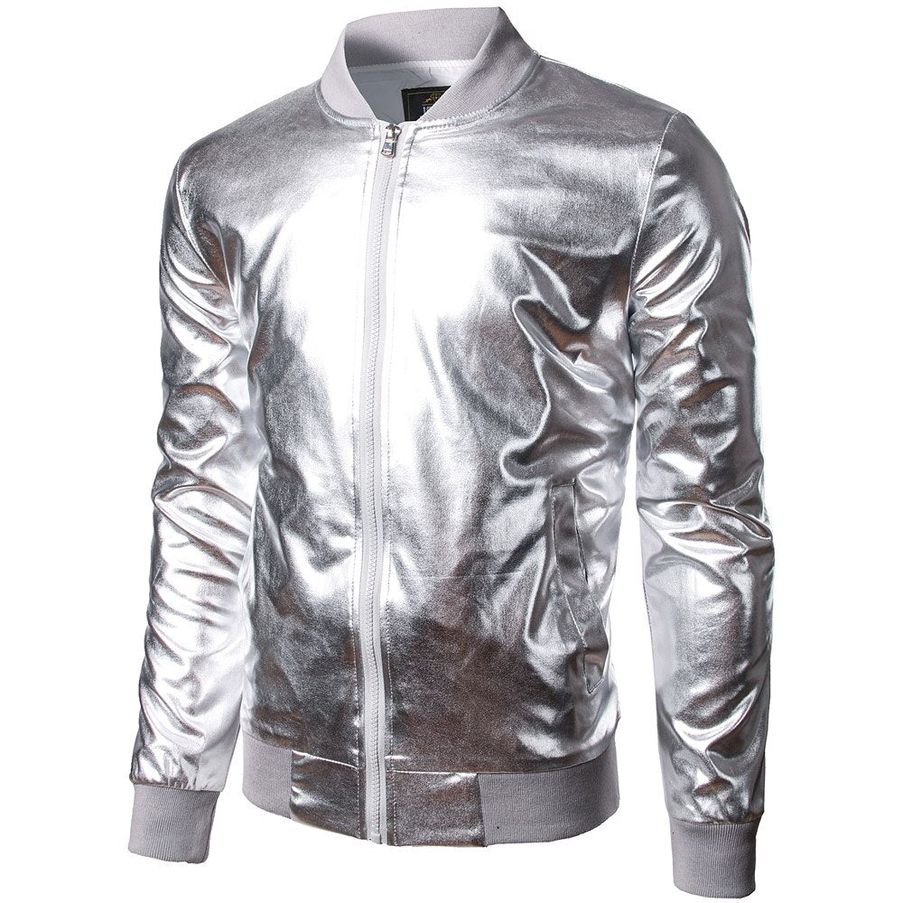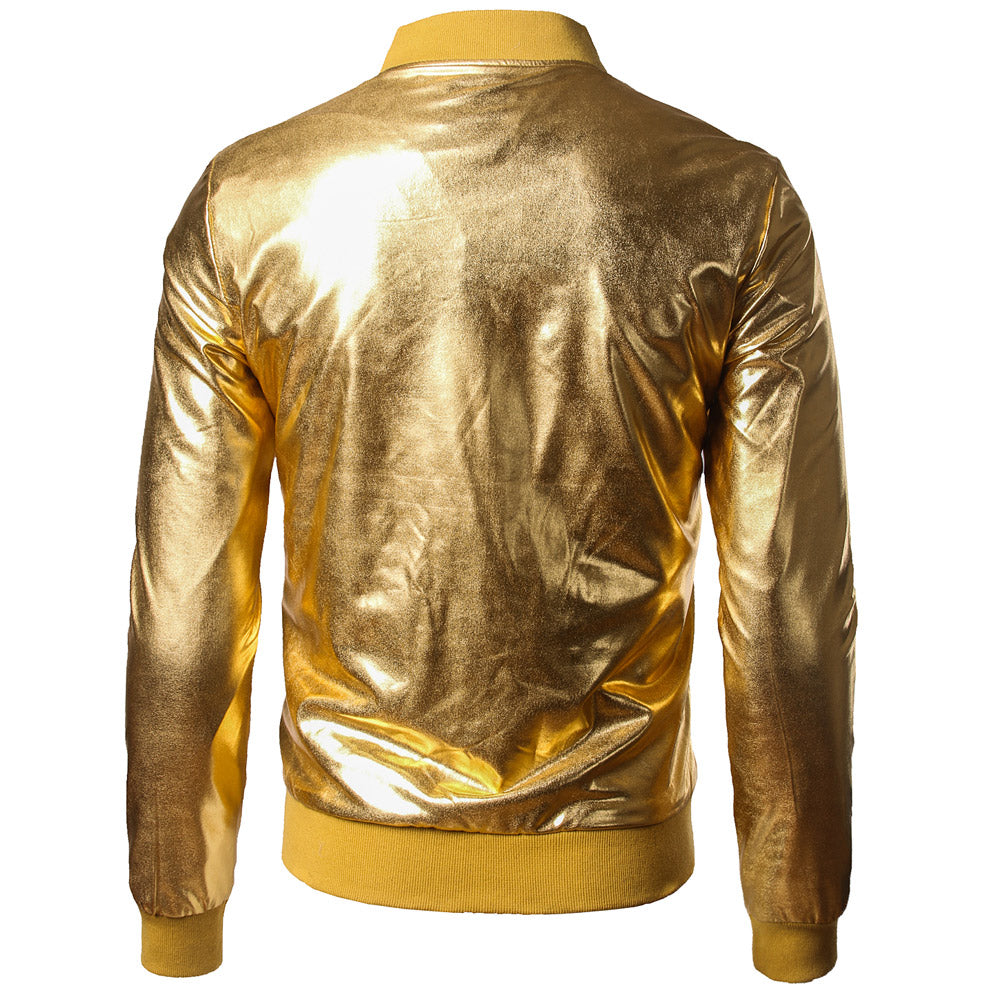 This nylon bomber features a golden, silver or black finish to bedazzle. Zipper fastening. Two slit pockets. Woven ribbed collar, cuffs and bottom hem. Inner lining.