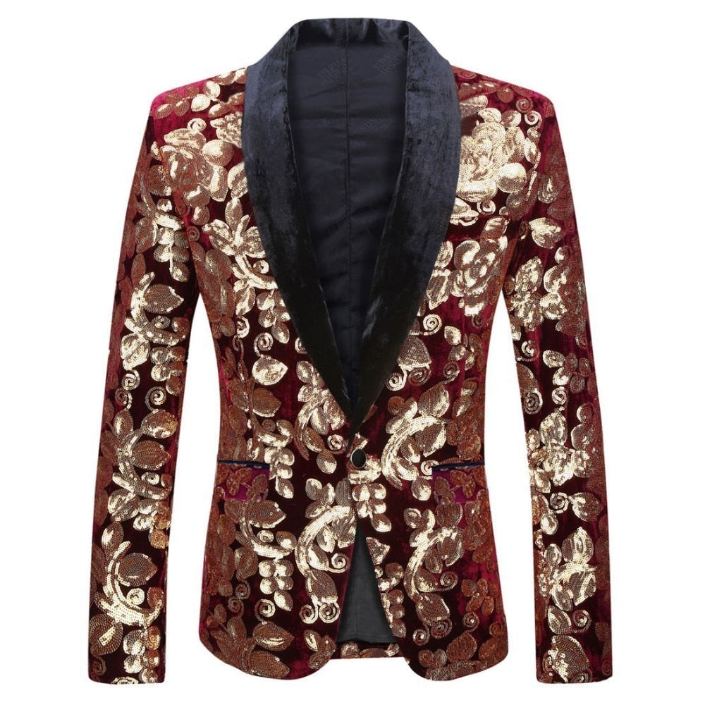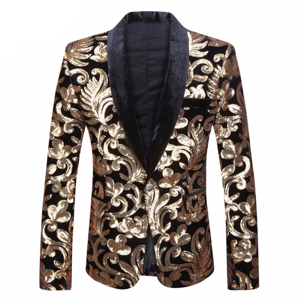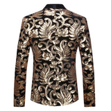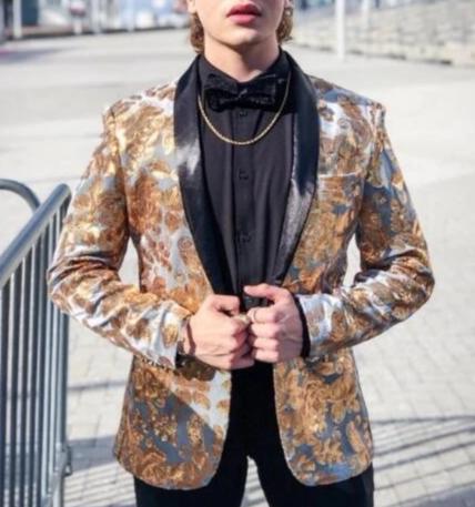 This golden damask single button evening jacket is the must-have item for all who want to draw all gazes on themselves. Satin details. Two slit pockets and breast pocket. The hexagonal logo is sewn on the yoke. Two slits on the back. Inner lining.