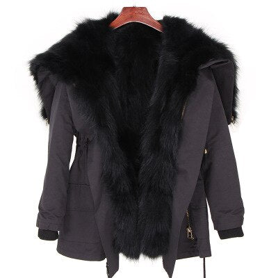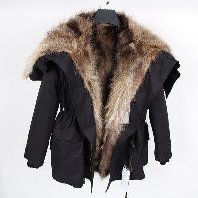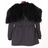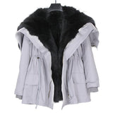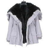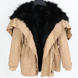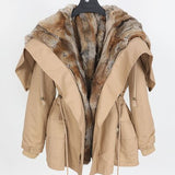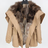 This hooded nylon bomber features the add of a detachable real fur on the hood that can be swapped for a hoodie. The hexagonal logo is sewn at left chest. Zipper fastening. Two slit pockets. Woven ribbed collar, cuffs and bottom hem. Inner lining