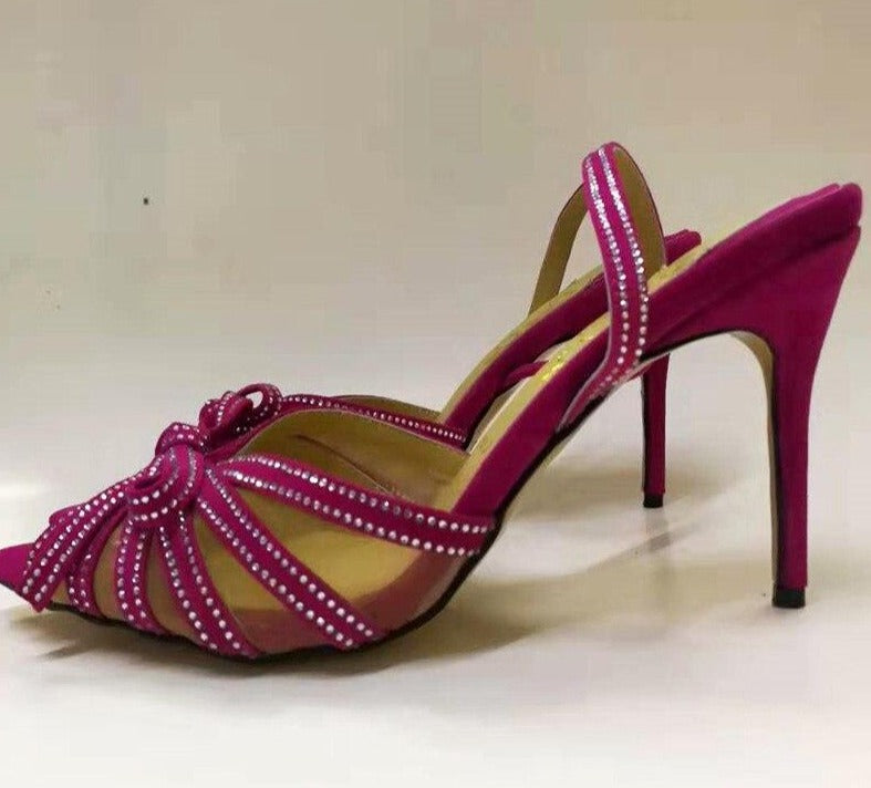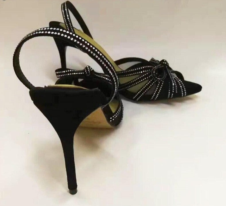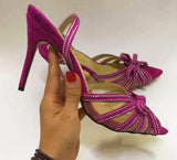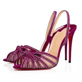 The gladiator sandals are the perfect match for hot-pants, miniskirts and a lot of different outfits. This vivid colour nappa version features Swarovski crystals and stud decoration on all the straps. Counter heel fastening strap. Nappa footbed with logo. Suede lined stiletto heel. Leather sole. Heel: 100 mm.