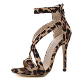 Rock vibes for these leopard print covered patent leather heels. ribbon buckled straps further characterize the item. Zip-up fastening on the back. Iron stiletto. Nappa footbed. Genuine leather sole. Heel: 120 mm.