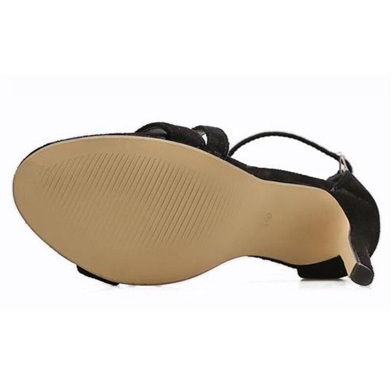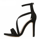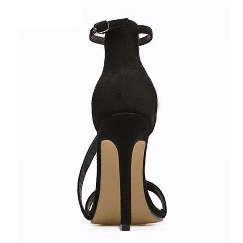 Suede strap sandals. Hexagonal buckle ankle strap. A jewel decoration on the stiletto heels. Dappled footbed. Heel: 120 mm.